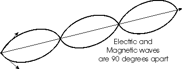 This refers specifically to a force which acts at a distance to influence, or impart motion, but the distances can be large or rather small. Electromagnetic forces between individual particles are stronger when they are in close proximity, and decrease with the square of their distance apart But the wave-like nature enter the picture too, at the atomic scale. The standing waves of electromagnetic energy around an atom serve to keep the individual electrons in stable orbits. The miracle is that the standing waves are created by the moving electrons of that atom. These electrons are like particles when they collide with something, but they behave like waves when they are in free motion. Depicted in the repeller sets (the outer color bands) is a clear sense of the wave-like aspect, and the steadily diminishing size areas (the circular shapes) show the particle aspect clearly. The relationship between the two aspects (the wave-like and particle-like natures) is very easily observable here, in part because the waves in the repeller sets are regular. However the electromagnetic force has another duality, as well. The electric and magnetic component don't point the same way. When electromagnetic waves propagate through space, the electric aspect and the magnetic aspect act at a 90 degree angle toward one another, in terms of their phase or directionality.